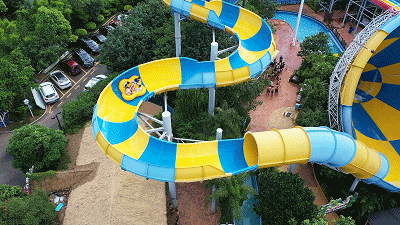 第二天一早,大家在恐龙水世界尽情玩乐。超级大喇叭、彩虹滑梯和竞技滑梯等大型娱乐设施让人尖叫连连,欢声笑语充满了整个水世界。特别是恐龙水晶玻璃桥,桥长288米,高约100米,站在玻璃桥上,花海园区的美景尽收眼底,令人心旷神怡。