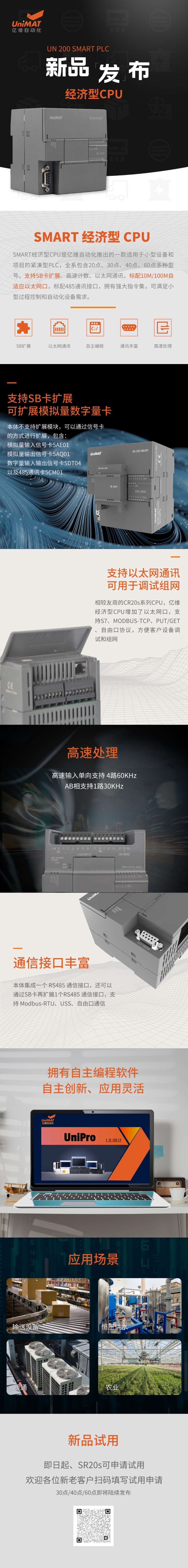 龙8中国官网唯一入口UN 200 SMART 系列 PLC在运算速度,网络通讯,高速计数,运动控制等功能上进行了全新升级,一经推出就获得广大客户的青睐,目前已广泛应用于暖通、水处理、包装、物流等行业,产品稳定,性能卓著。