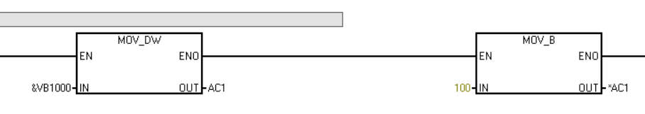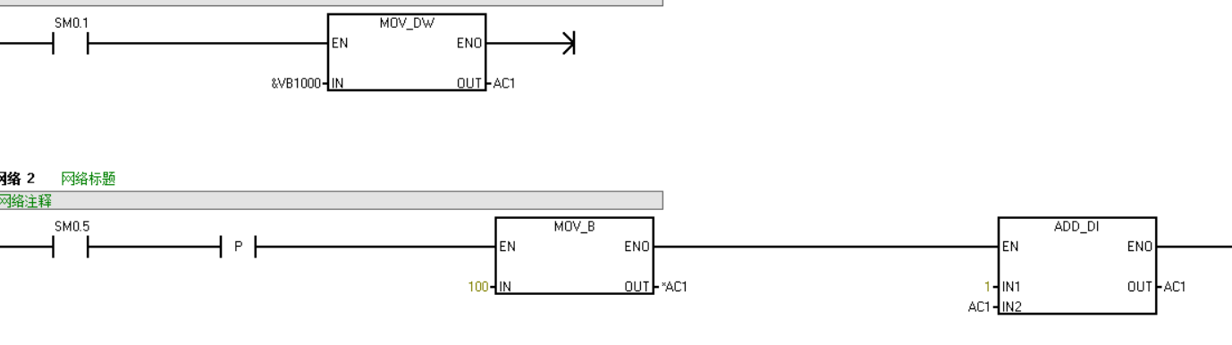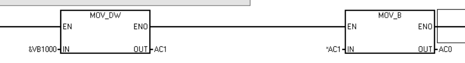 如上图中VB1000就是所谓的地址指针(即VW1000的起始地址),*AC1是AC1所指向地址中的数据(AC1前加“*”号代表AC1为一个指针)。