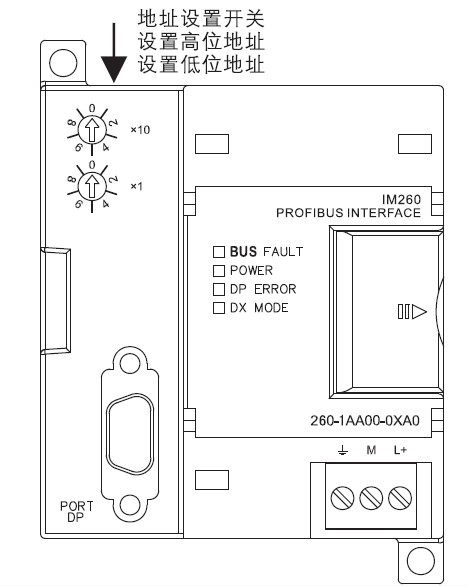 IM260 是一种接口模块,它可将UN200模块连接到PROFIBUS-DP网络(即IM260经过串行I/O总线连接到UN200模块),PROFIBUS网络经过其DP通信端口,连接到IM260模块,这个端口可运行在9600波特和12M波特之间的任何PROFIBUS波特率。作为PROFIBUS DP网络的模块化从站设备,IM260模块可以7个数字或者模拟输入和输出的扩展模块,向主站发送和接收不同数量的数据。这种特性可以使用户更换不同的200系列模块,以满足实际应用的需求。