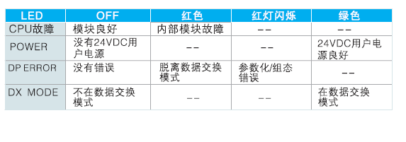 l 当DP的通讯成功地初始化后(IM 260 PROFIBUS-DP 模块进入和主站交换数据的状态时),DX MODE灯变绿直到数据交换状态结束。