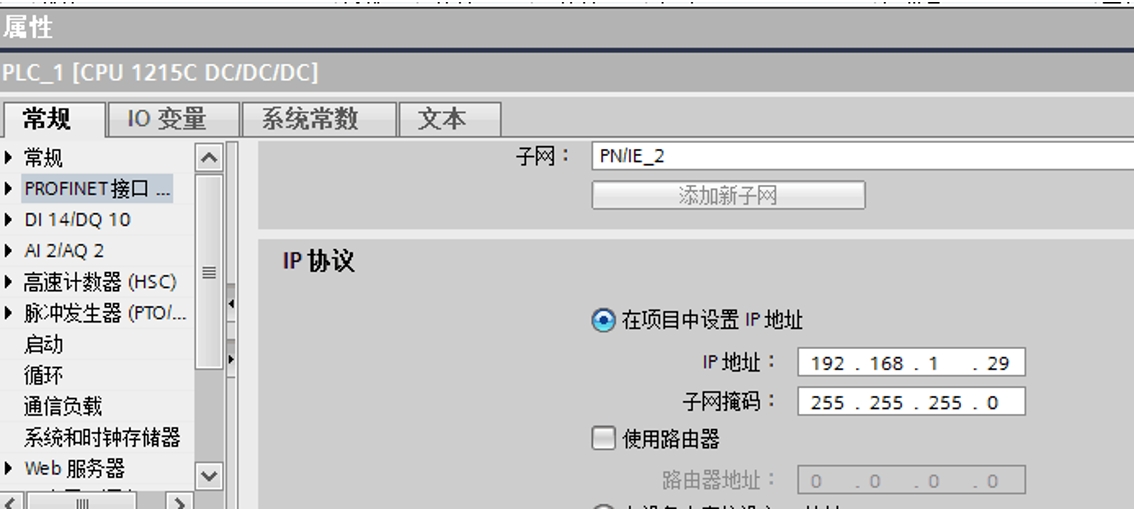 2、双击CPU,为CPU添加子网,设置CPU的IP,本例设置IP:192.168.1.29.