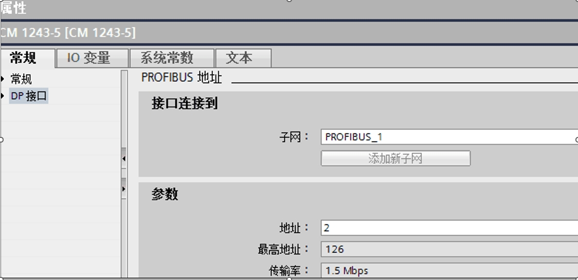 3、双击DP主站模块1243-5,添加DP网络,操作模式为主站。