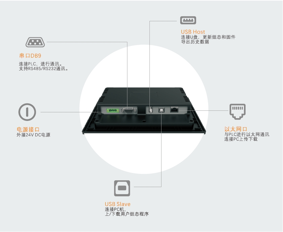 USB Host | USB2.0 x 1, Type A(USB1),支持U盘更新固件、组态和存储数据 |