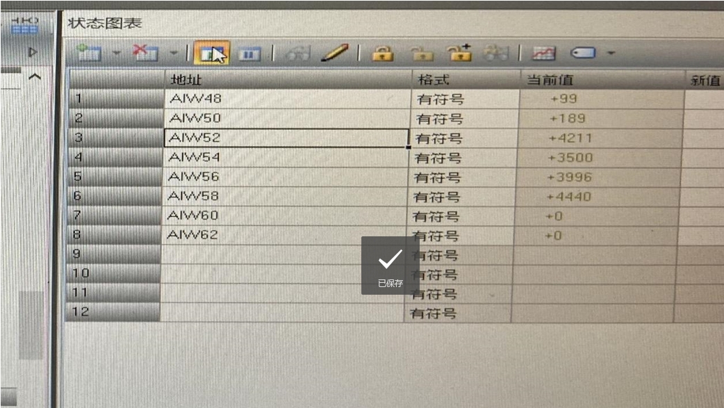供地后,AIW52模拟量值正常