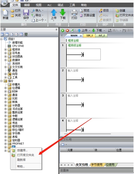 2、 打开SMART编程软件STEP 7-MicroWIN SMART,右键“库”,点击“打开库文件夹”。