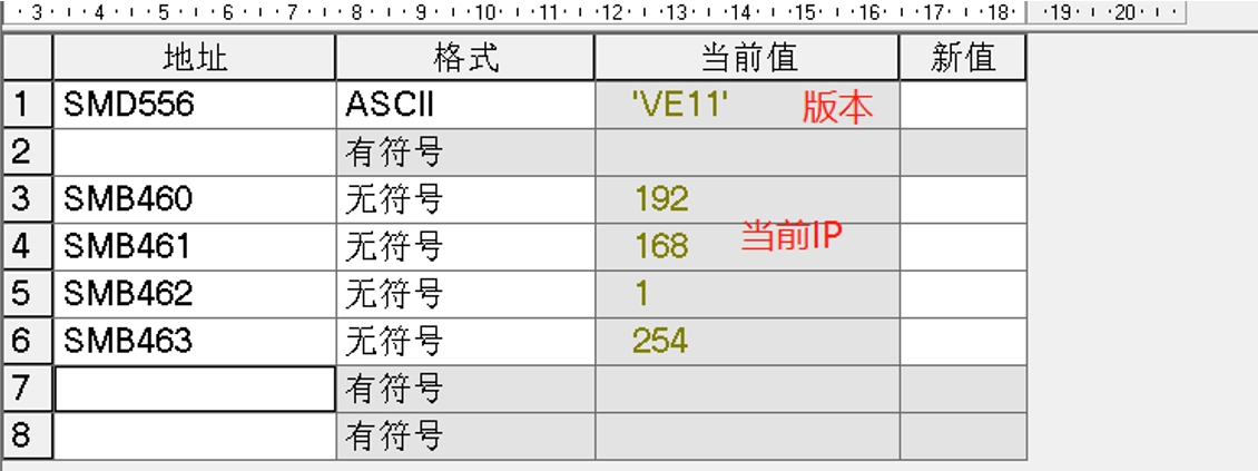 VE11版本后的PLC提供特殊地址SMB460~463来显示当前的IP。在触摸屏上通过数值显示控件关联地址SMB460~463来显示当前的IP