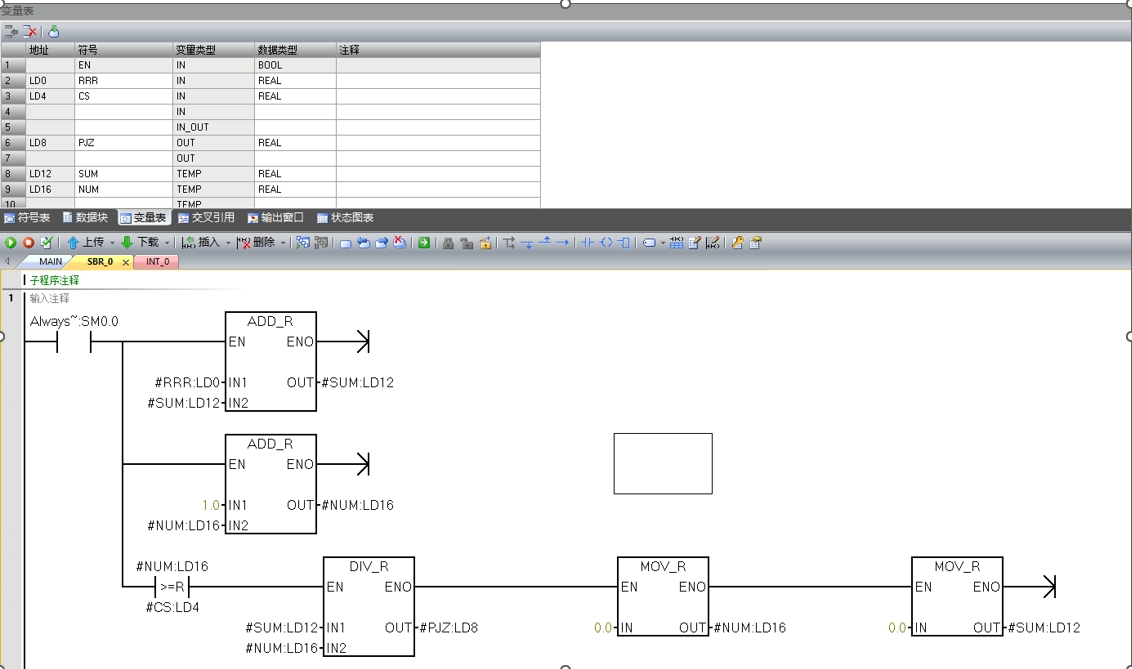 前些时候有个客户使用smart系列PLC,现场的模拟量值有些不稳定,想增加计算下平均值在输出。编写的程序如下: