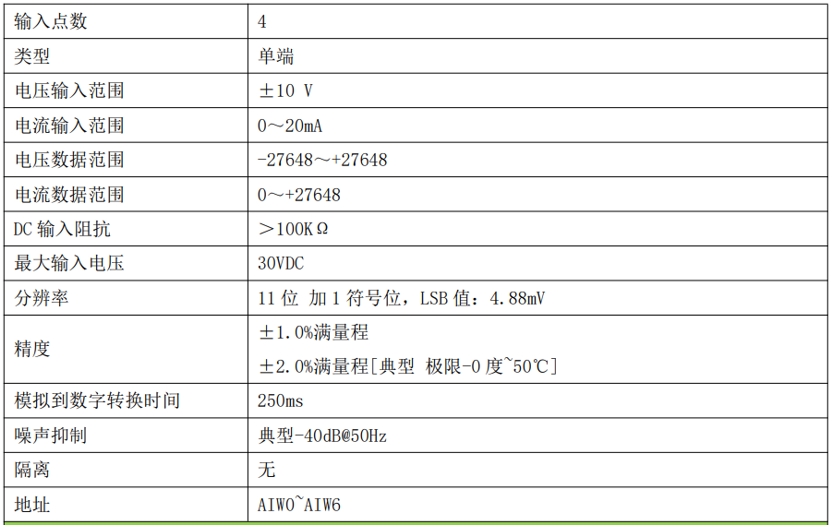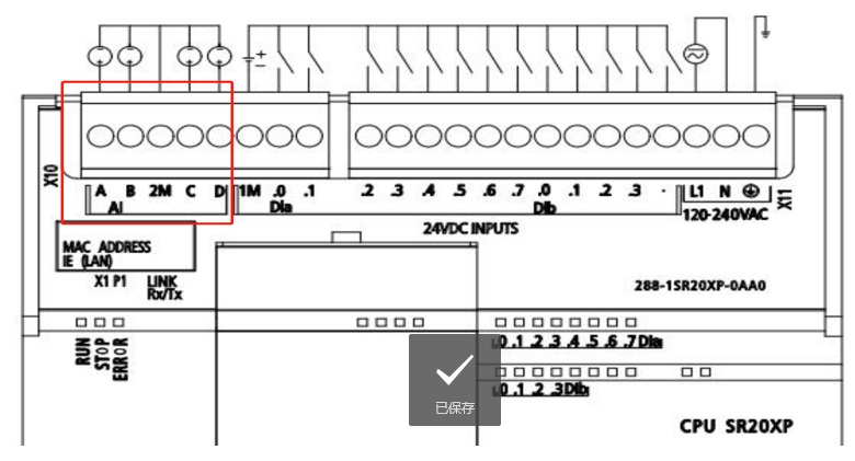 ABCD4个模拟量输入的公共端,地址分别是AIW0 AIW2 AIW4 AIW6. 中间的2M4个模拟量输入的公共端。4个模拟量输入可以是电压或者电流,默认电压。