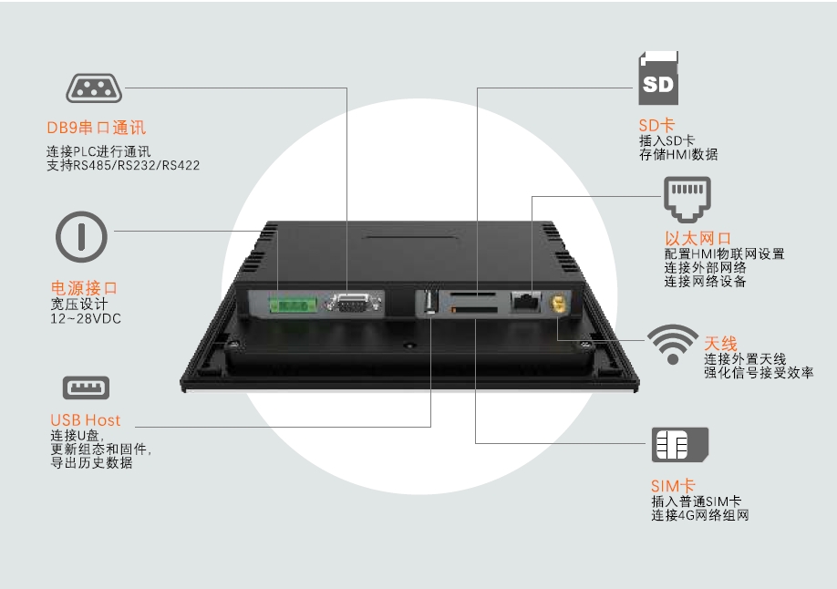 USB Host | USB2.0 x 1, Type A(USB1),支持U盘更新固件、组态和存储数据 | ||