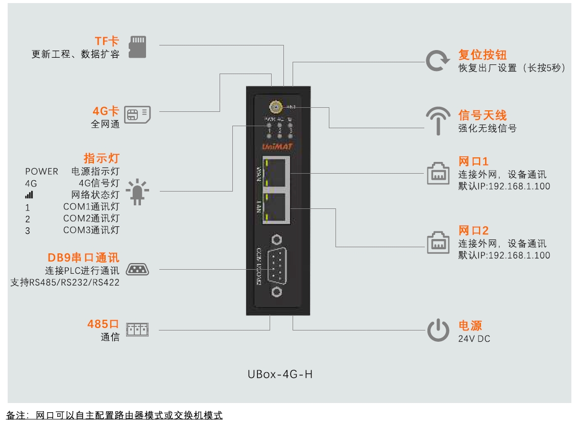 TF卡 | 支持TF卡更新固件和配置 | ||